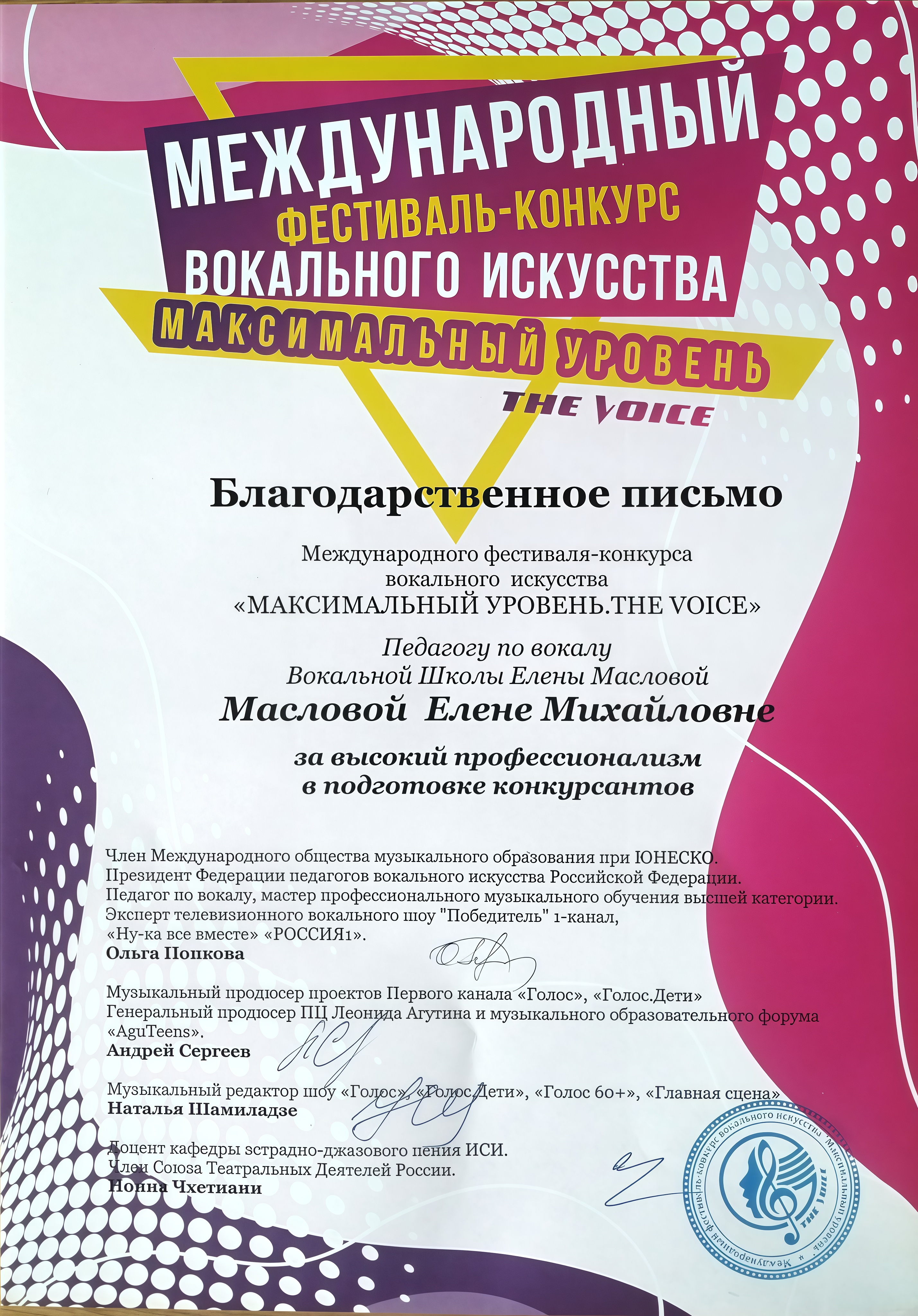 Благодарим Вас за выбор Вокальной школы Елены Масловой!